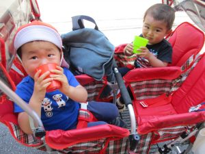 長い距離の散歩でしたので水分補給も欠かさず行いました。