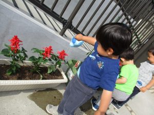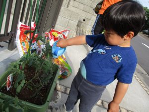 夕方はサルビアとトマトの水やりも欠かさず行いました!