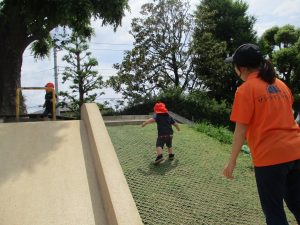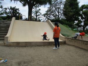谷津コミュニティーセンターでは大好きなローラー滑り台で思い切り体を動かして遊びました。