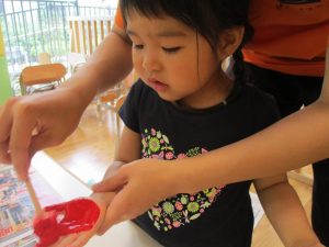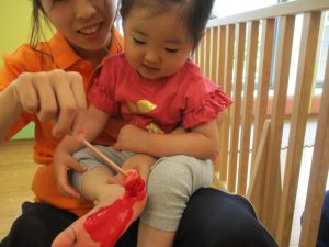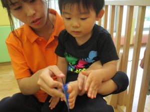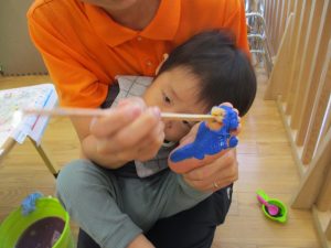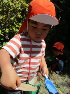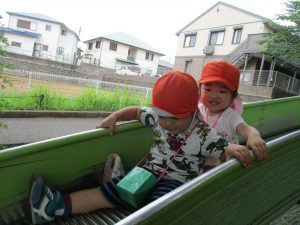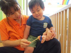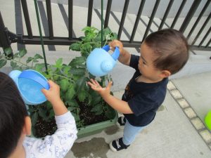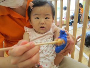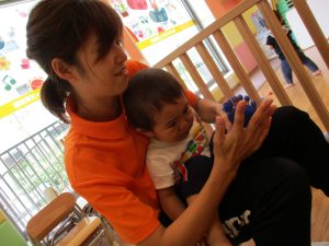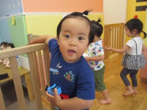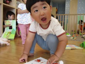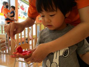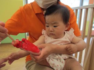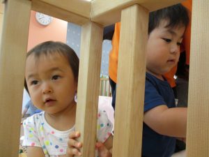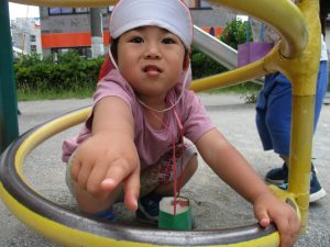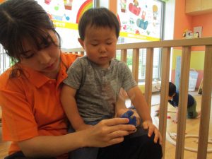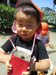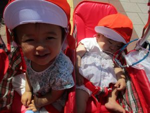新入園のお子様も少しずつ園生活に慣れ始め、活動の代わりどころになるとふと思い出したかのように泣いてしまう場面もございますが、担任の先生をはじめ先生達に抱っこされると落ち着いた表情になり、子ども達と先生達の信頼関係も日に日に深まって参りました。