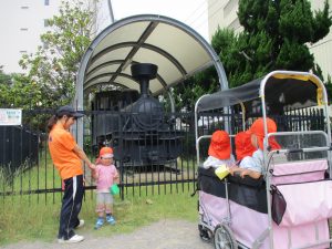機関車が展示されており、子ども達の目が輝いておりました!