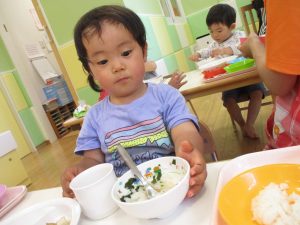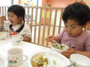 本日より慣らし保育のお子様も給食がスタート致しました!