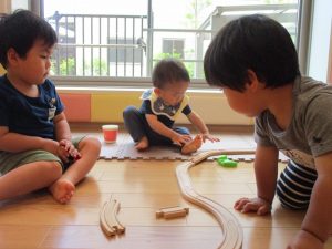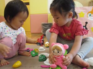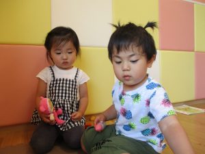 2歳児のお友達は谷津コミュニティーセンターで遊びました。