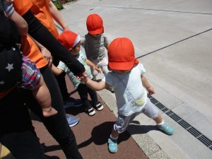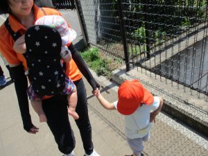 0.1歳児のお友達は園周辺をお散歩しました。