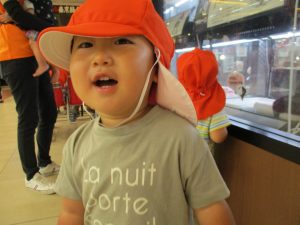ショッピングモール内も散策しましたが、ペットショップの前を通り犬さんや猫さんを見て指差ししながら興奮気味に先生達に教えていました!