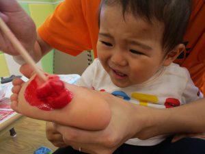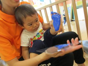 全年齢で足形をプラ板に取りました!