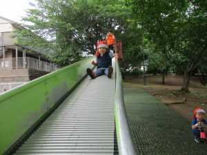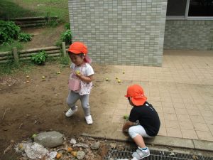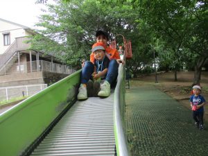 ローラー滑り台を堪能したり、梅の実集めに夢中でした。