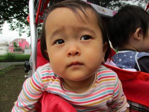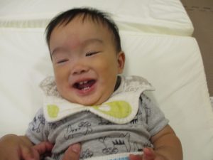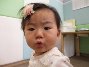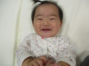 誕生カードに目が釘付けとなり思わずニコッとする表情がなんとも可愛いですね。