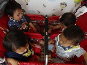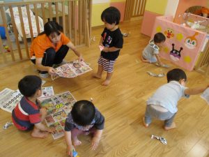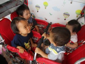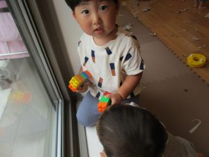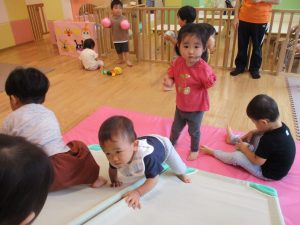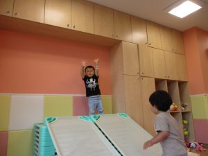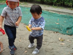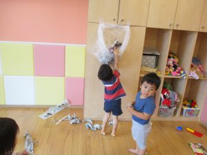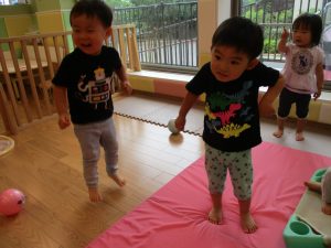 2歳児は力を合わせて遊ぶ姿もちらほらと垣間見え、子ども同士の関わりの中で協調性も育まれていると強く感じました♪