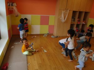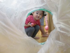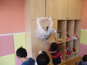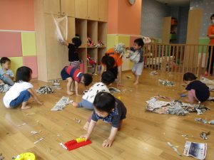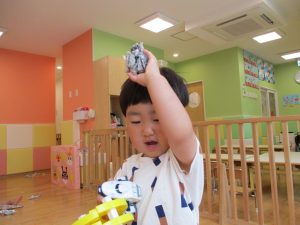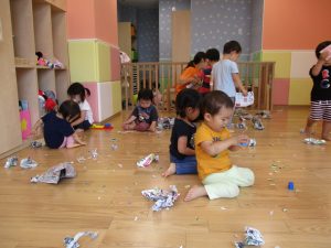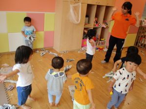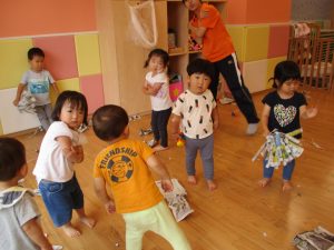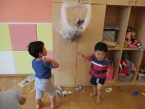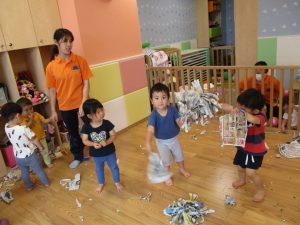 室内では久しぶりに新聞紙遊びを楽しみました!
