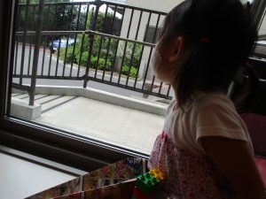 戸外へ散歩へ行こうとしたら突然の雨に打たれてしまい急遽室内で過ごしました。