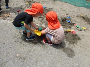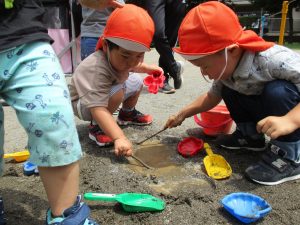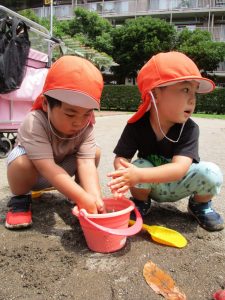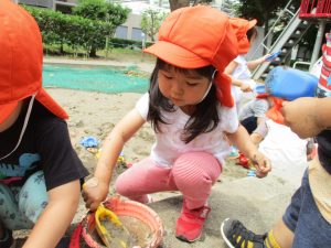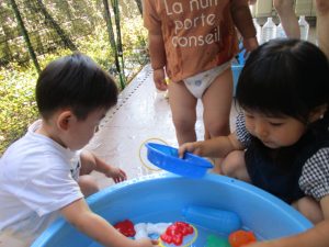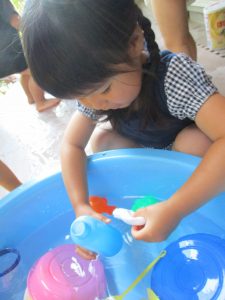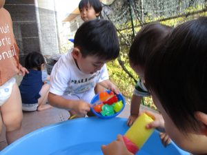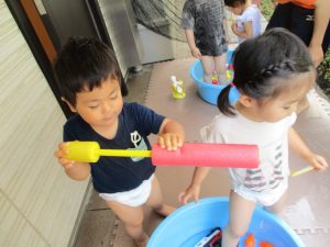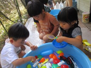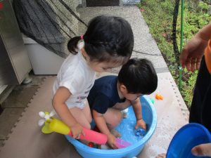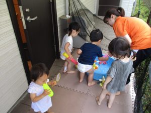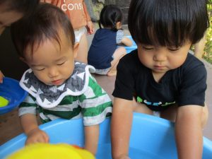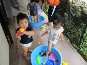 7月、8月、暑ければ9月も水遊びを行おうと考えておりますので、その日の天気やお子様の健康状態に準じてゆっくりと進めて行こうと考えております。