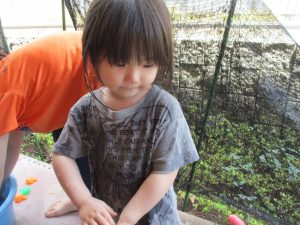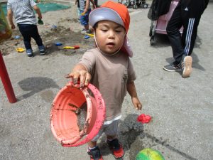 朝方天気がパッとせず水遊びは中止し谷津1号遊園で水遊びならぬ泥遊びを楽しみました。