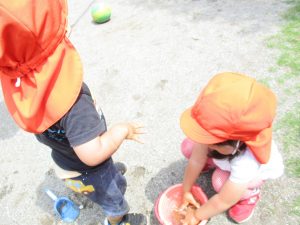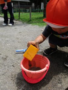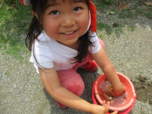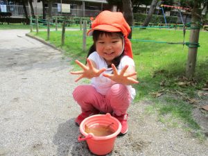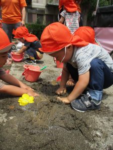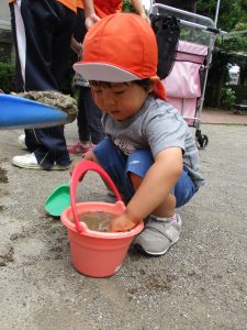 結果的には水遊びが出来る程暑くなりましたが、普段なかなか味わえない泥の感触を不思議がりつつも皆笑顔で楽しんでいました!
