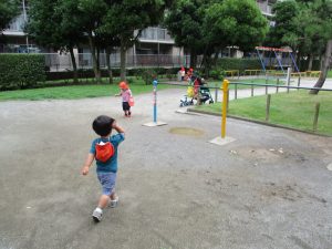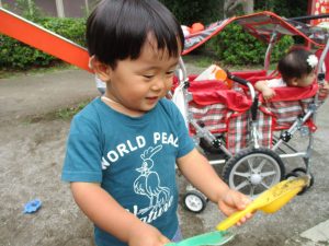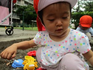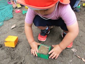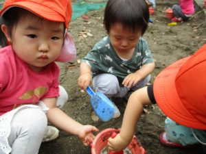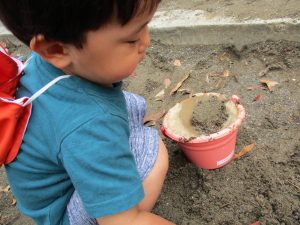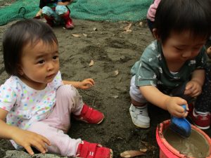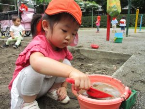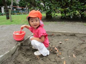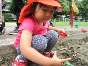 谷津1号公園の砂場にてままごと遊びを楽しみました♪