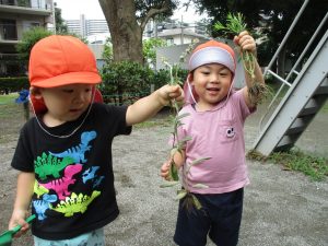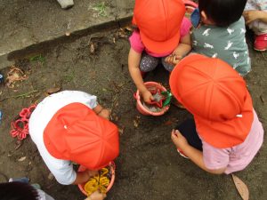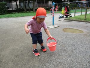 2歳児さんを中心に水くみを頑張る姿に逞しさを感じます。