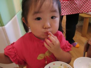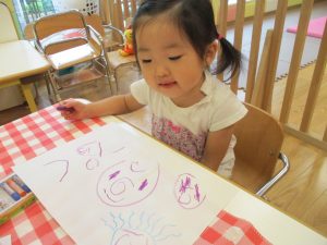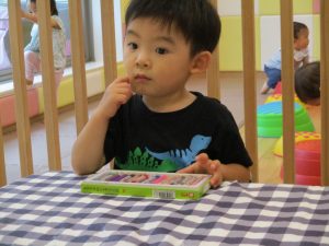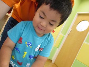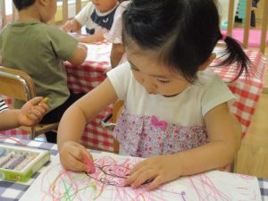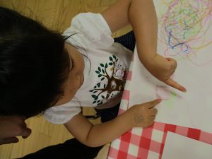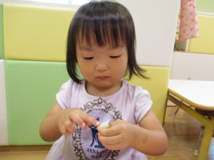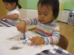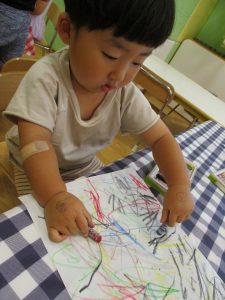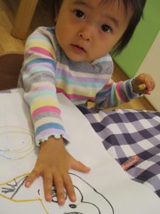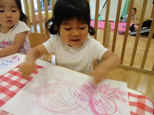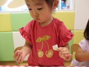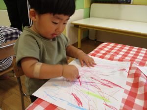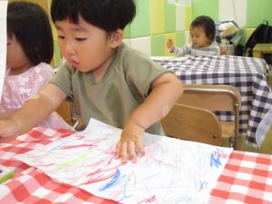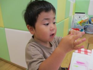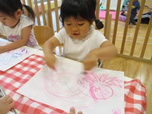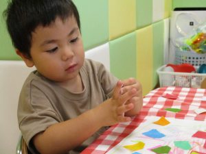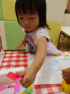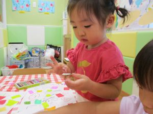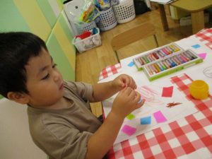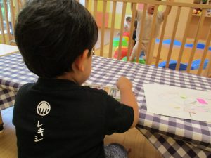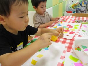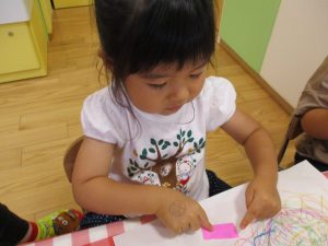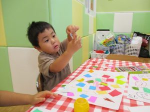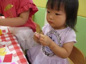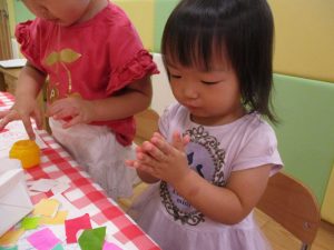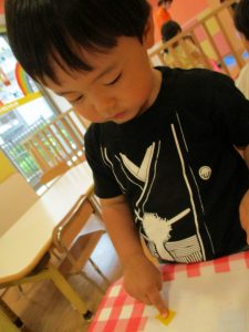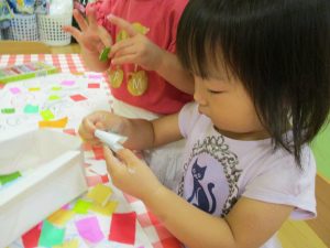 糊の分量がまだうまく測れませんが指いっぱいにたっぷりの糊を付ける仕草も、この時期ならではの子ども達の様子としてはとても可愛いですね!