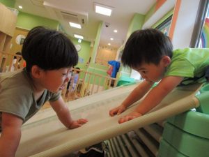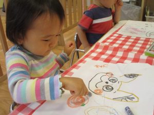 絵描きを楽しんだり、コット滑り台でたくさん体を動かして遊びました。