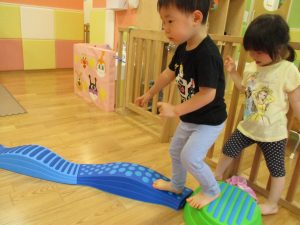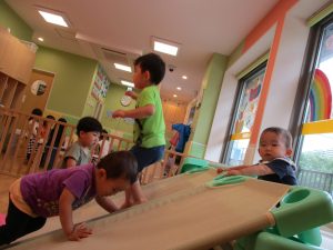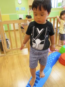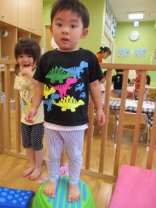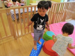 この時期は室内で過ごす事が増え平均台の乗り方も全体的にレベルアップしてきたように感じます。