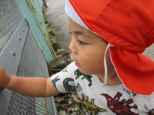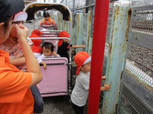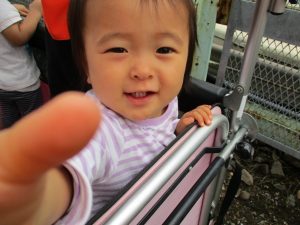 電車の臨場感に圧倒されながらも指差しや「おーい」と大きな声で電車を呼びながら楽しんで過ごしておりました。