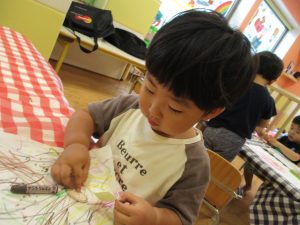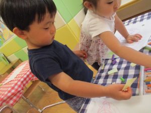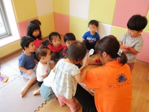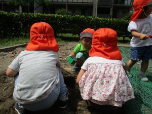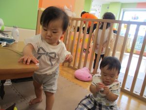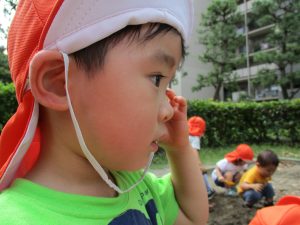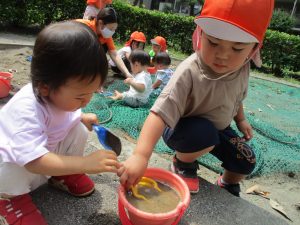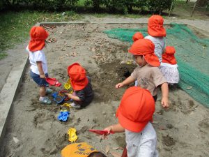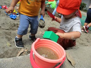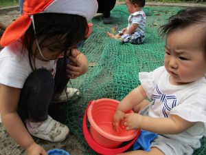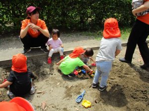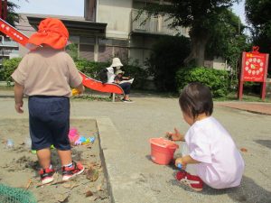 もう少しだけ日中の気温が上がれば曇りでも水遊びを行いたいのですが、そこはお子様の健康と安全を第1に考えて保育を進めていきたいと思います。