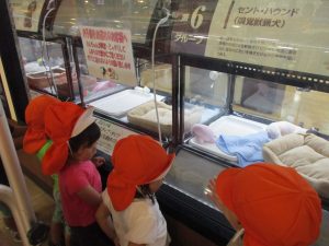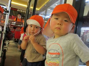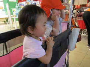 帰園する際に園周辺のショッピングモール内を散歩し、ペットショップの犬や猫を見て喜んでいました!