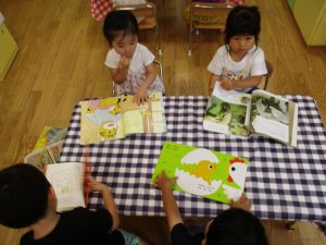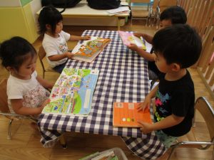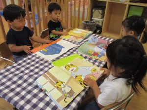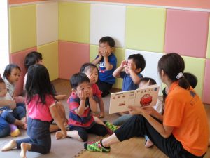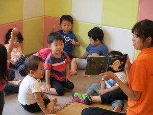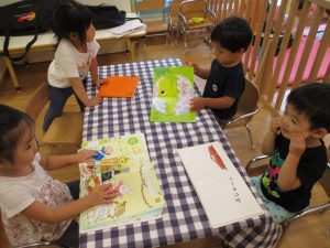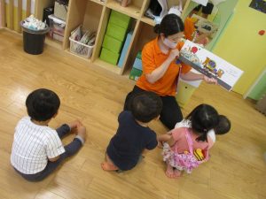 活動の節目に皆で絵本を楽しむ時間を設け、楽しい時間を1分1秒でも多くお子様に提供できればと思っております♪