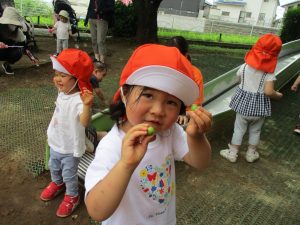 園前で育てているトマトも第1便を「収穫」し給食の時間に皆で美味しく頂きました!