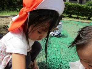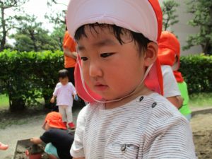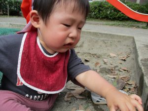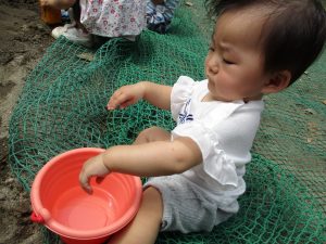 泥や砂の感触がとても好きなようで何度も握りしめたり、シャベルから落ちる泥をじーっと見つめておりました。