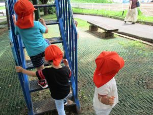 日陰が多い公園は本当に過ごしやすく、ローラー滑り台を繰り返し乗りたくさん体を動かして遊びました。