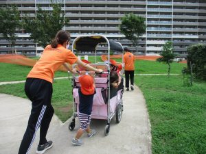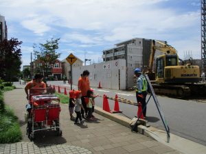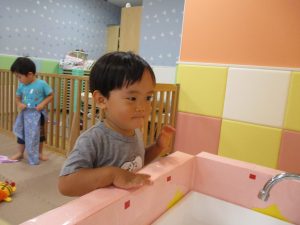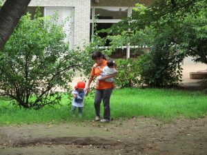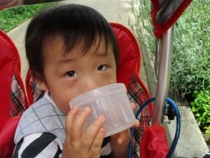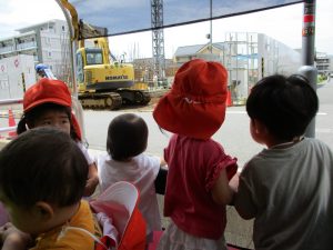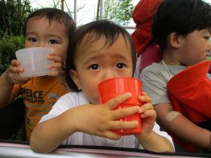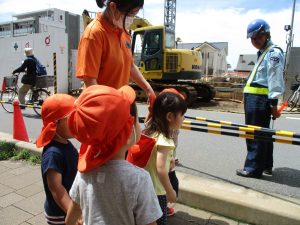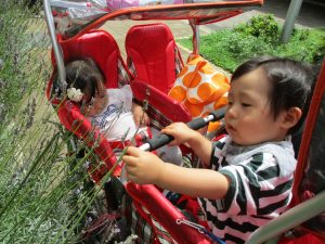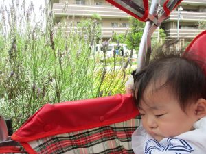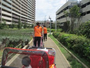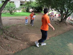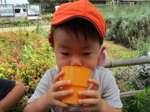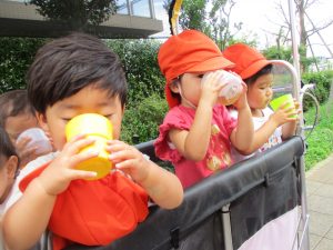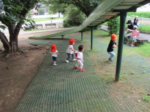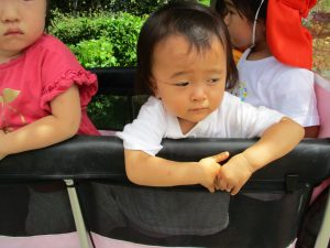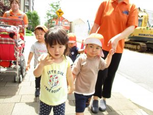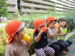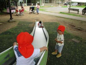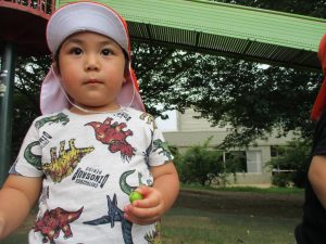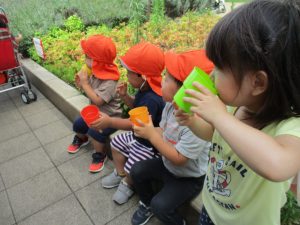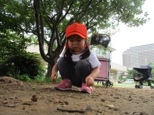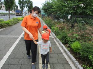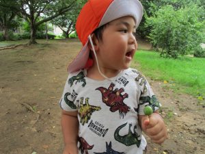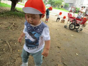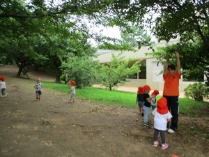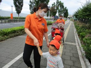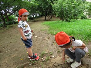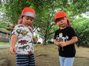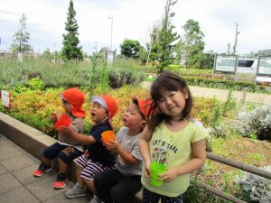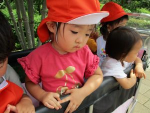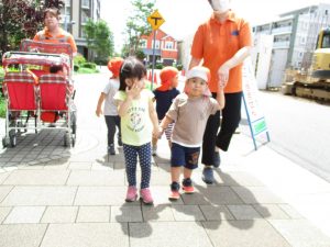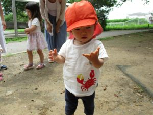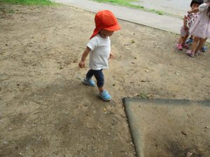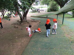 週明け月曜日は非常に天気が良く、いよいよ水遊び!と思ったのですが、お子様達の体調不良が少し目立ち園周辺の散歩に切り替えました。