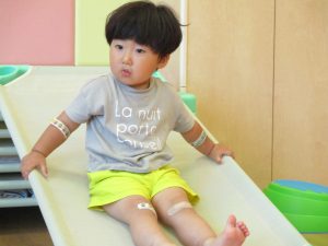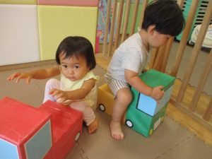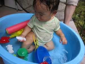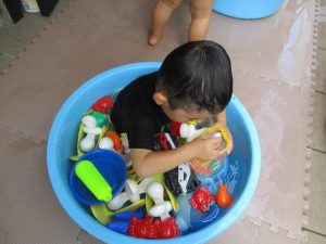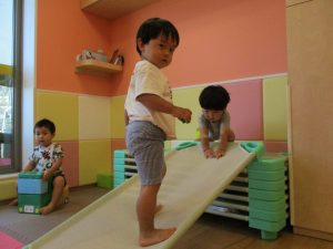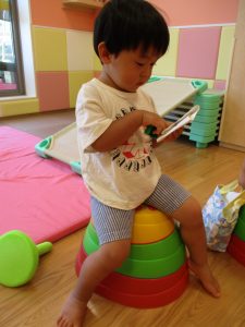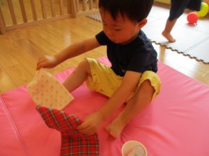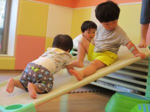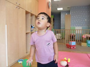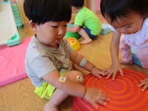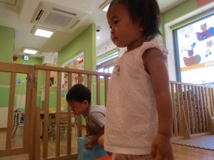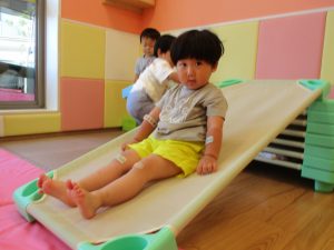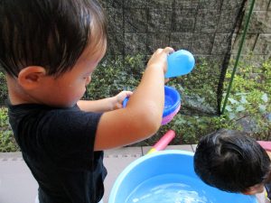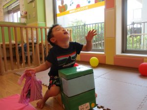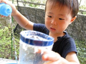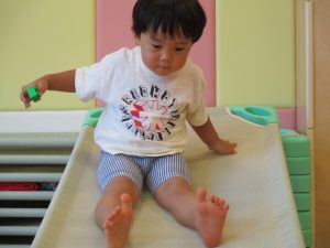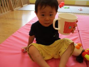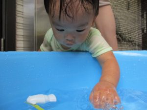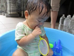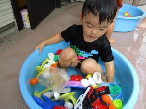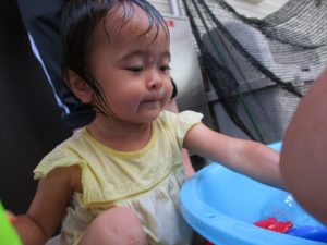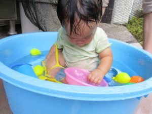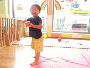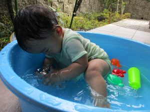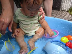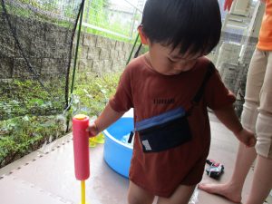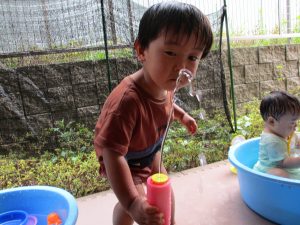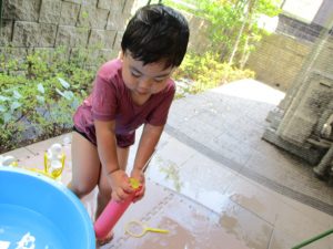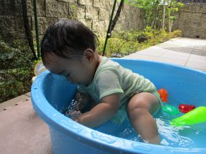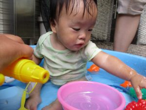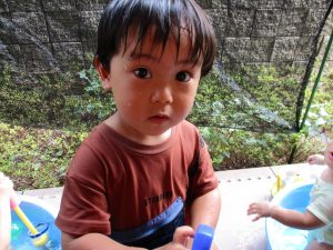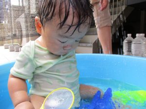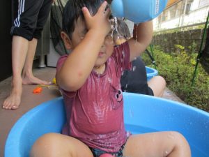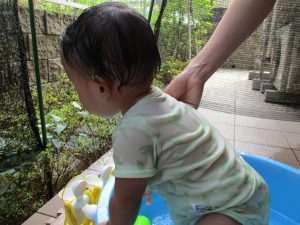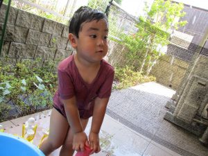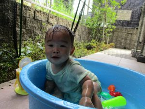 0歳児の男の子も体調が回復し初めて水遊びを行いましたが「嫌がるかな?」との先生達の心配をよそに夏を独り占めしておりました!