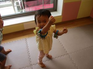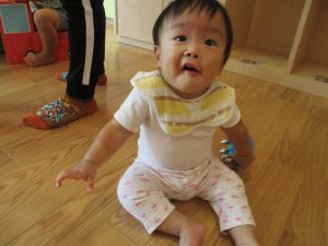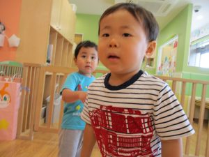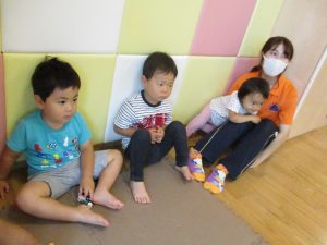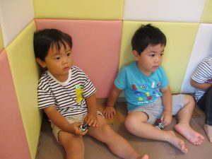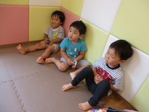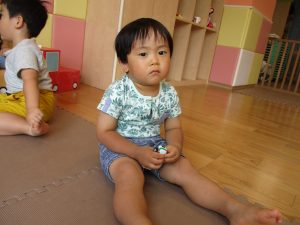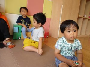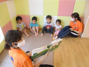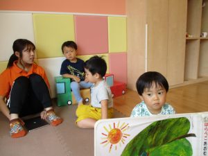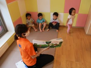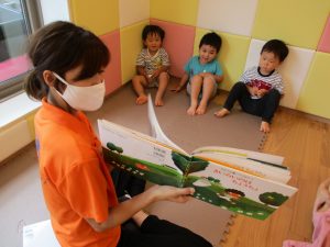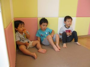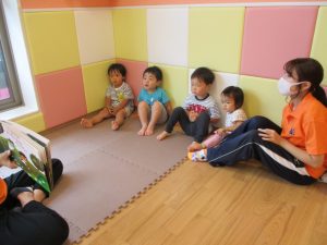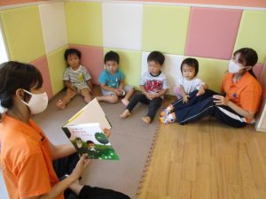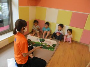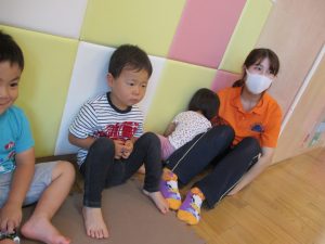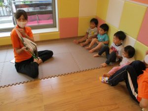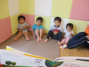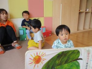 水遊び後の絵本の時間に少し目を擦る子もおり、少しご機嫌斜め?それでもなんとも可愛い表情をしておりました!