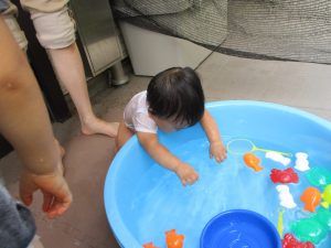 0歳児のお友達もお兄さんお姉さんに負けず、豪快に水遊びを楽しめております♪