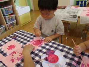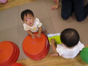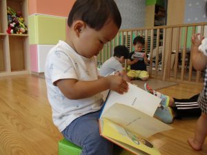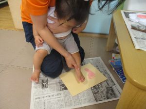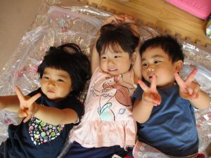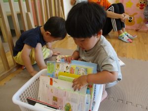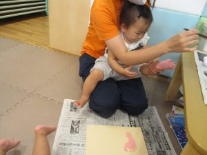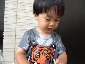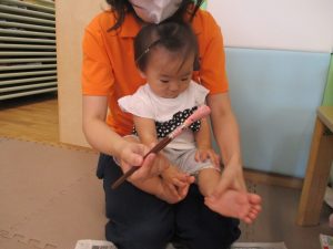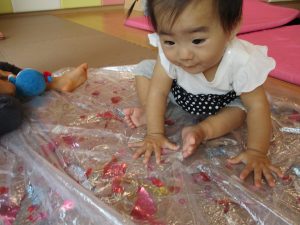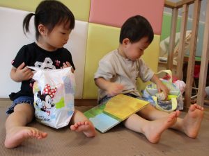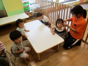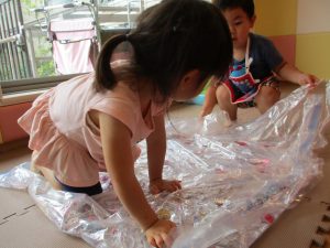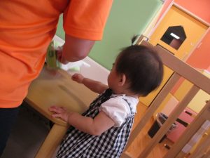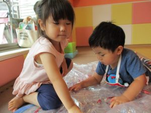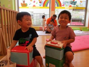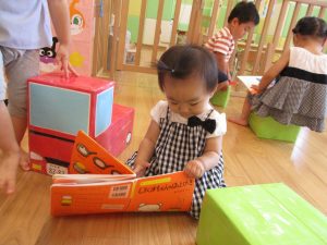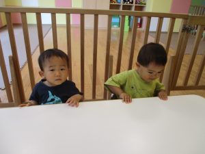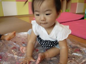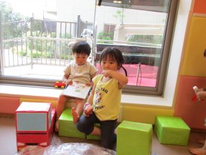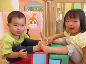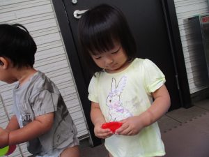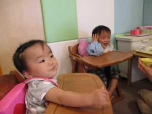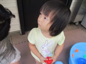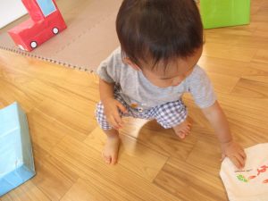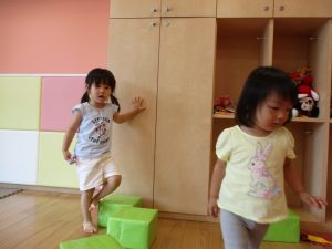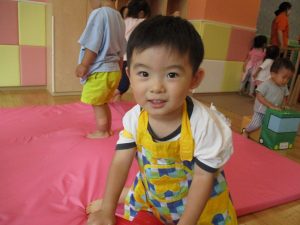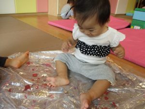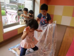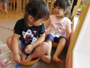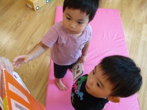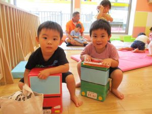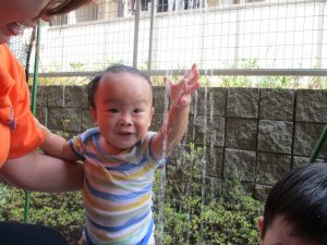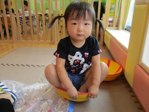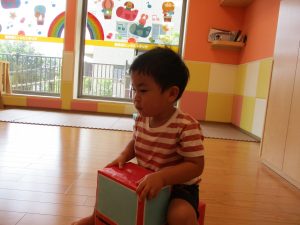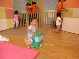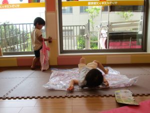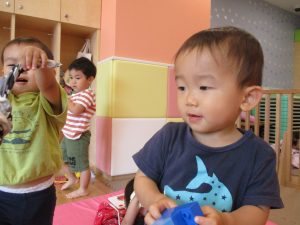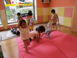1歳児のお友達も2歳児のお友達の真似をしながら遊び方が日に日に豪快になって参りました。