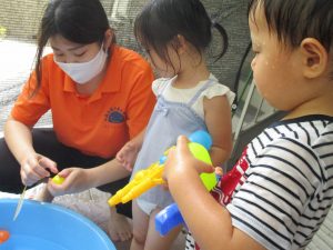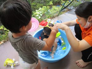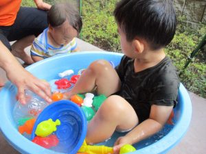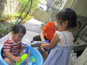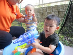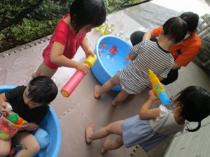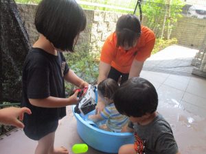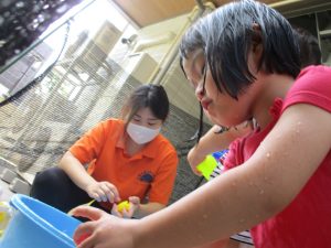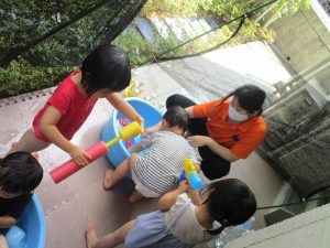 水遊びを通して異年齢の交流も日に日に増してきているように感じます♪