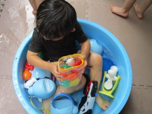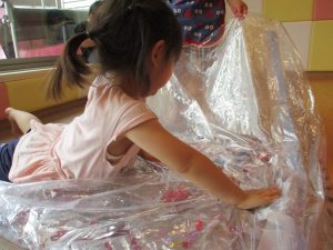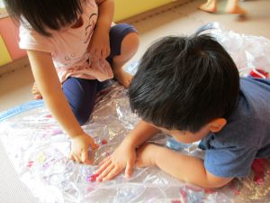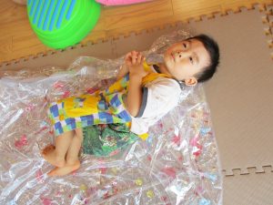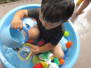 室内でも水の感触が味わえ子ども達から大人気です♪