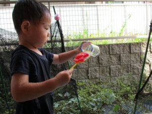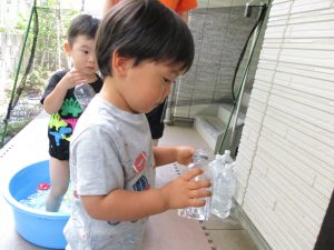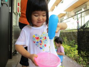 子ども達もその日の気分で水遊びの内容を変えているようですね!
