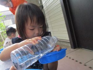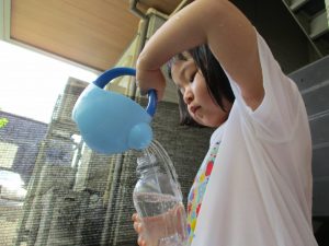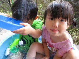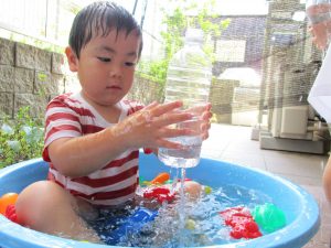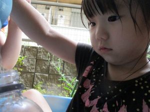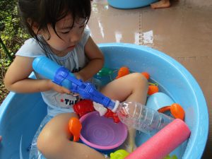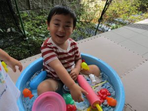 メリハリを効かせて室内で過ごす案も出ておりますが、子ども達のこの夢中かつ楽しそうな表情を見ていると、本当に毎日水遊びを実施して良かったと日々思えます。
