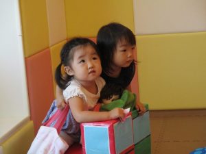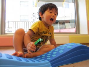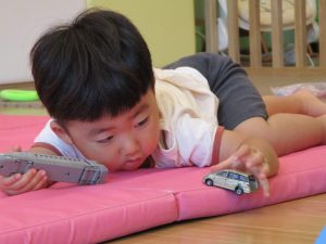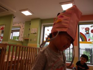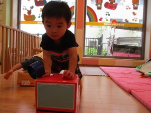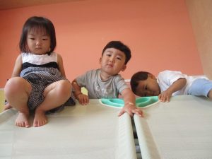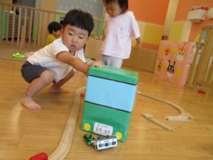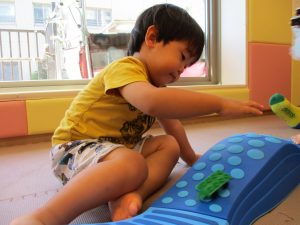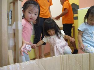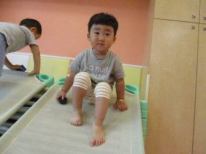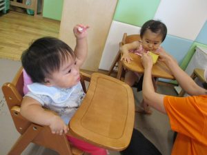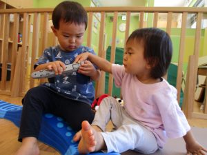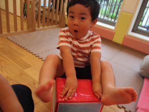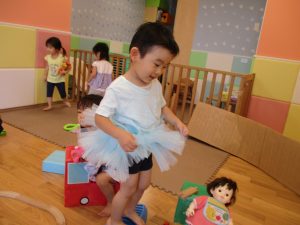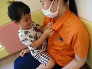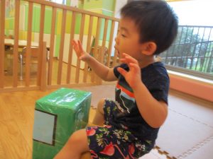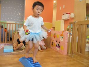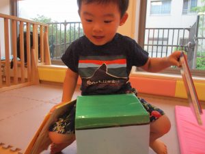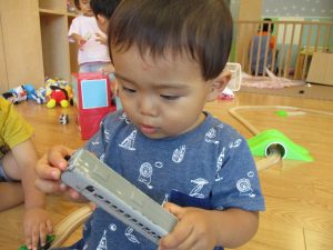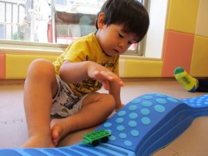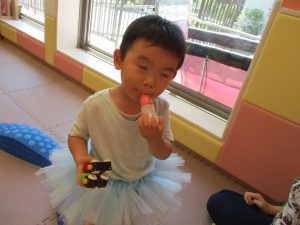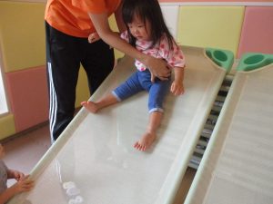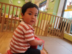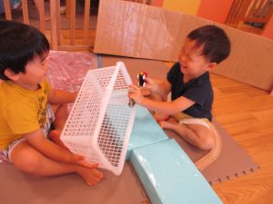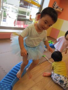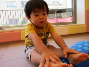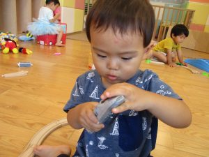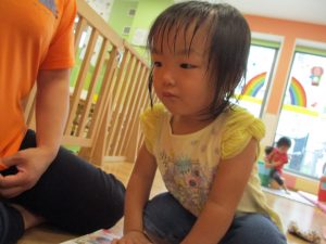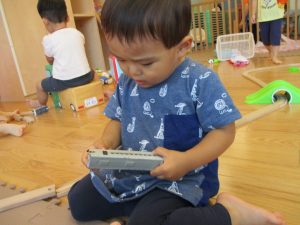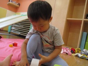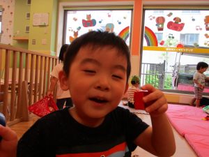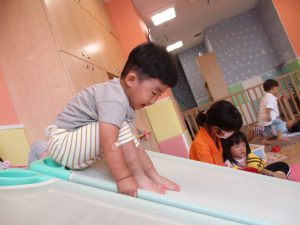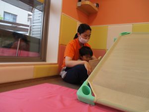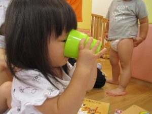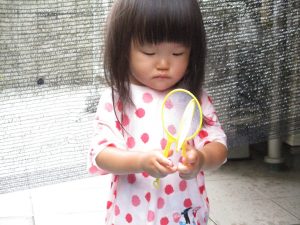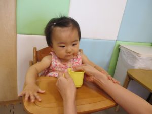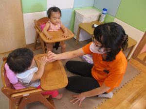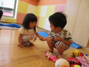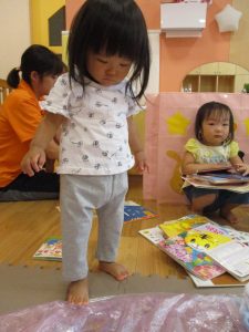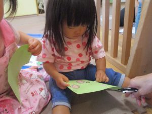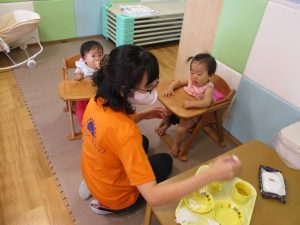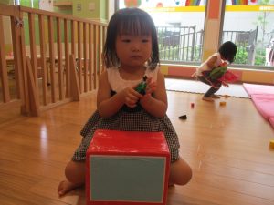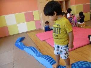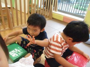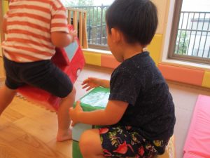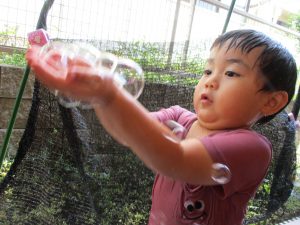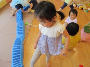 新しいお友達も水に対しての抵抗感もなく水遊び玩具を使用して水の感触を味わっておりました♪