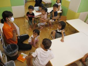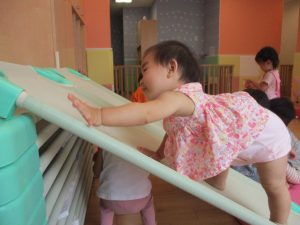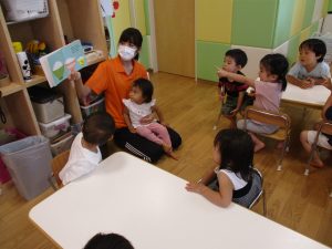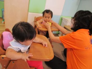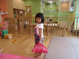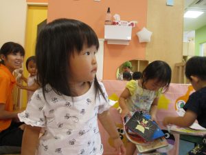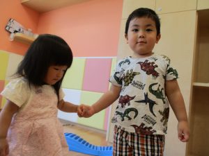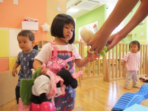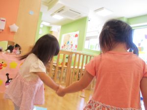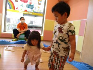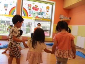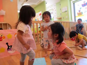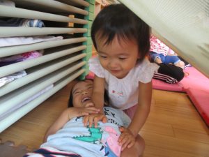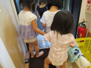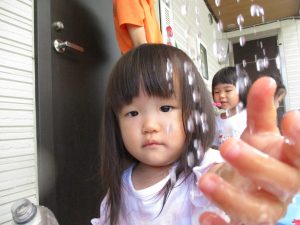 水遊び前後では2歳児のお友達が新しいお友達の手を引く場面もあり逞しさすら感じました。