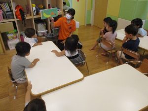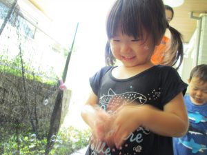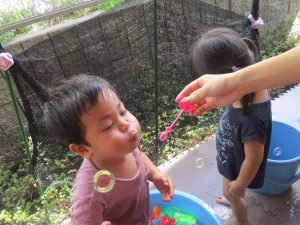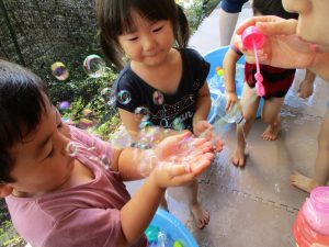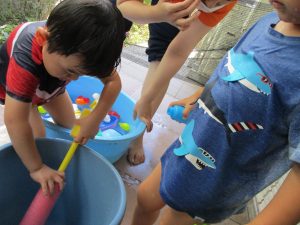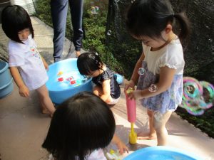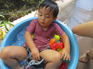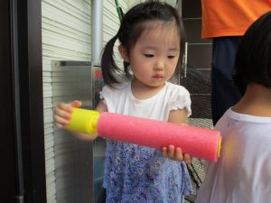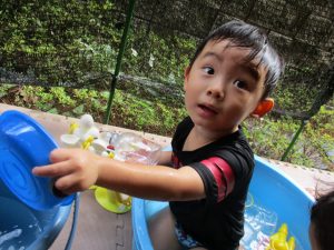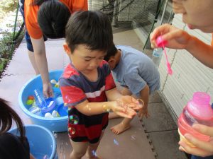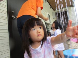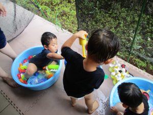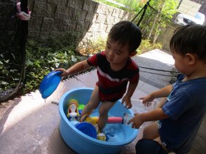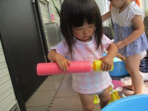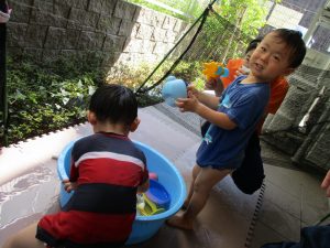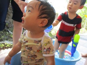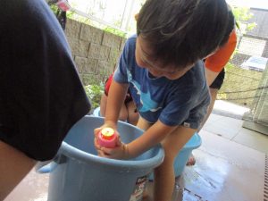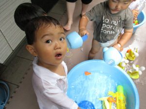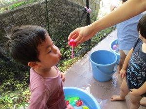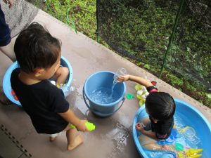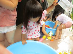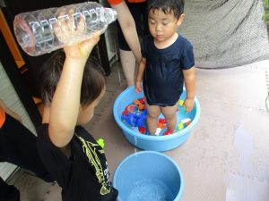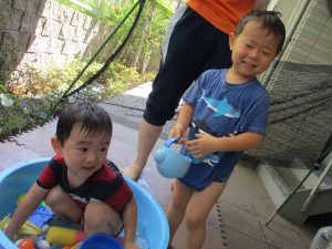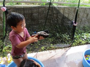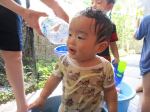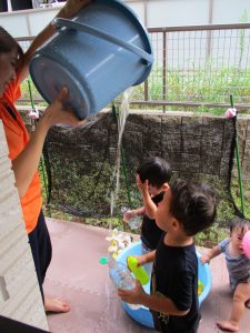 週の折り返しの木曜日、暑さがぶり返し水遊びを行えました。