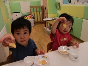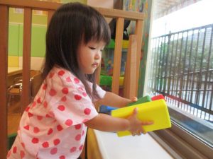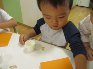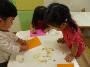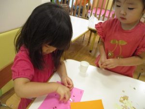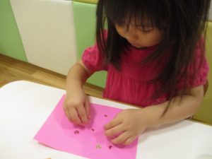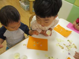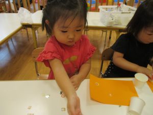 シール貼りも日に日に小さなシールを剥がせるようになり、子ども達の成長の早さに目を丸くさせられます♪