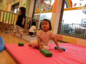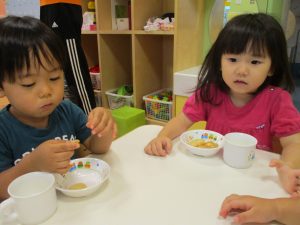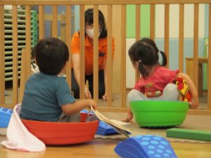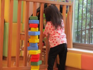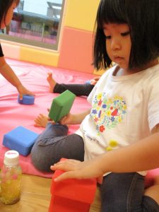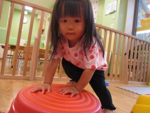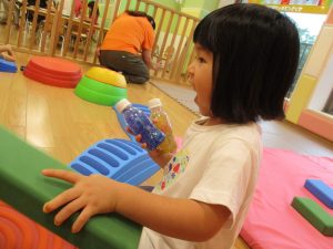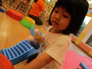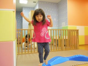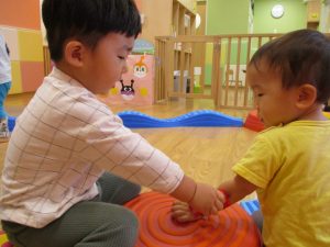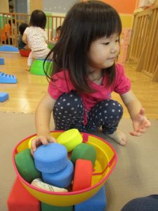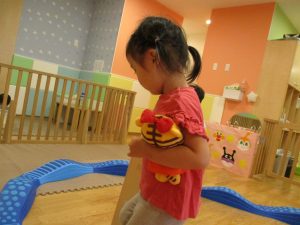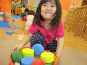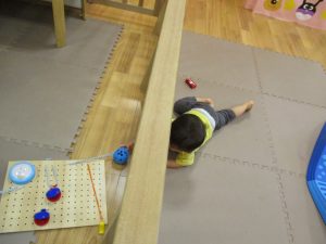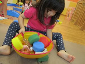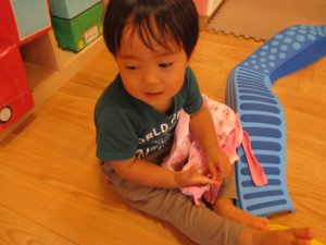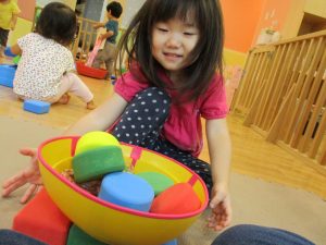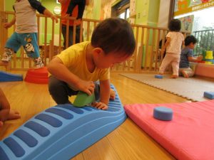 気が付くと平均台を裏返し大きなボウルに見立てままごと遊びも展開しておりました!