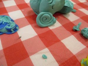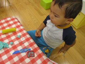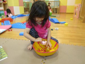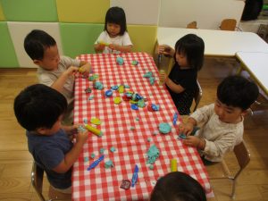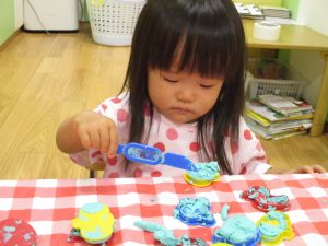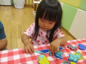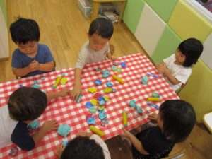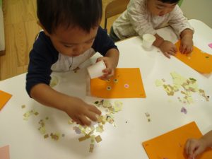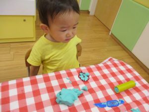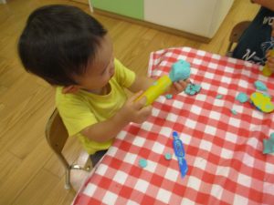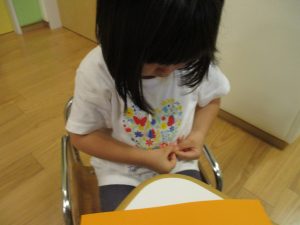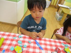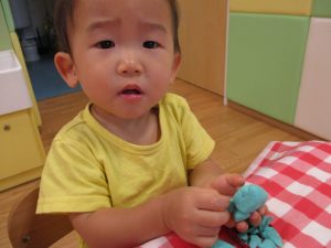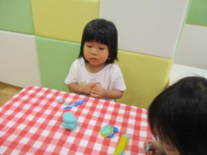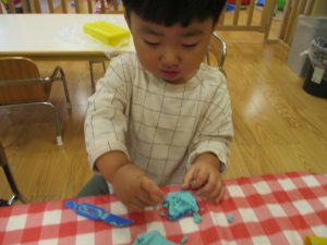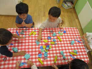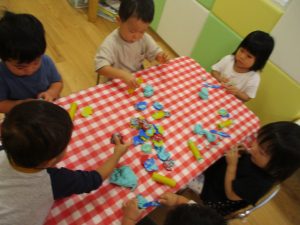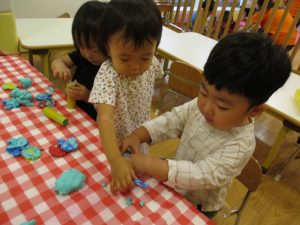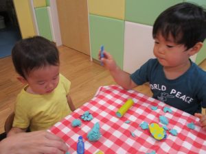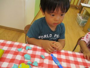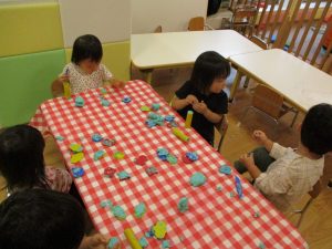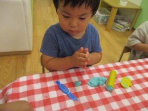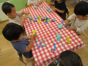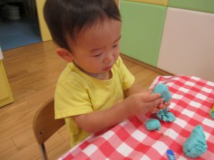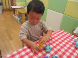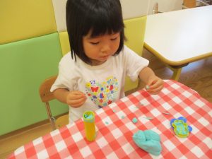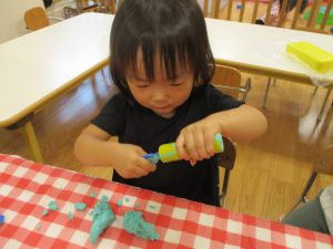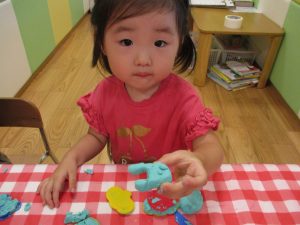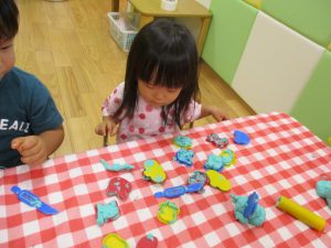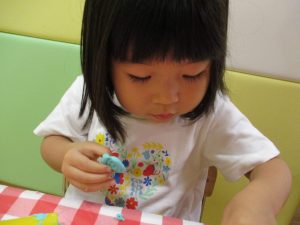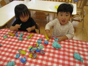 粘土遊びやシール貼りと言った机上遊びを中心に手先の感覚をたくさん養いました。