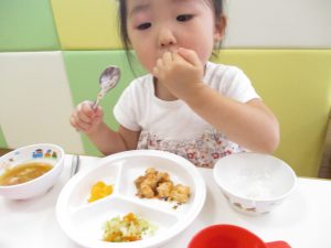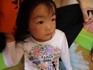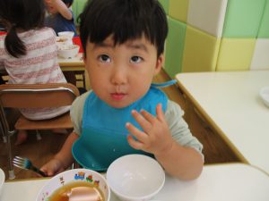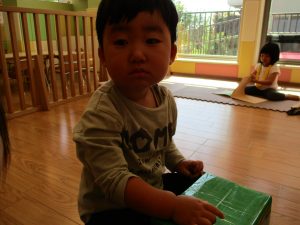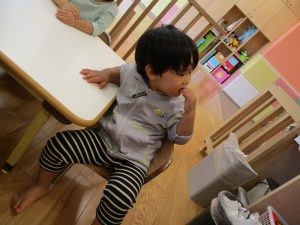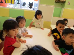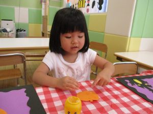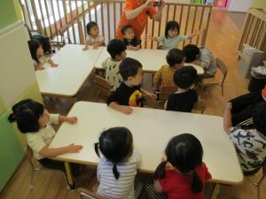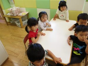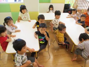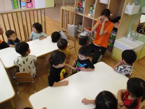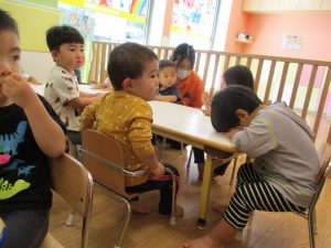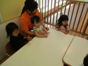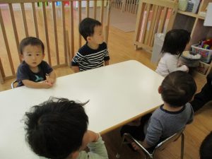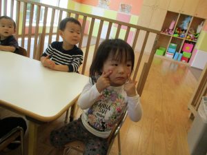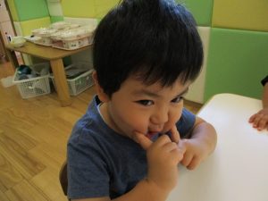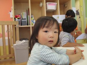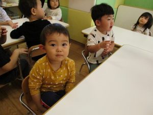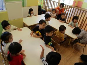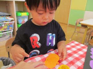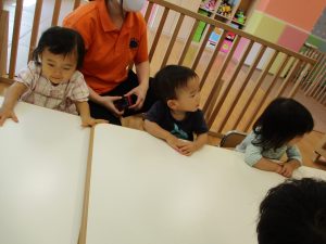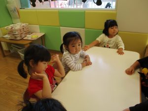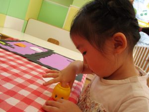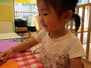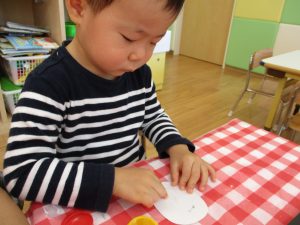 2歳児さんらしく糊を使った製作を行いましたが「ちょうど良い量」を指につけるのは案外難しいのですが上手に糊付けが出来ました♪