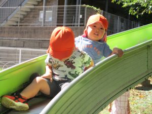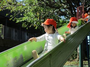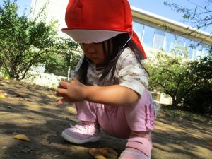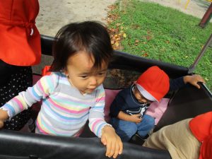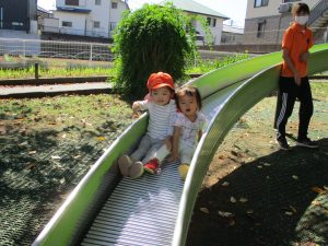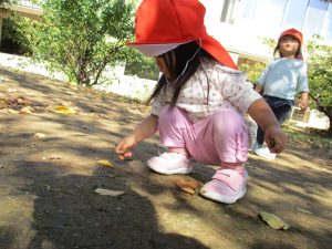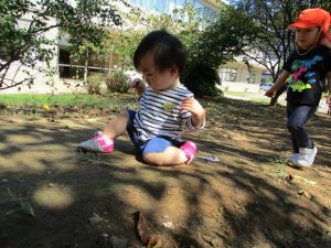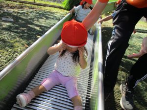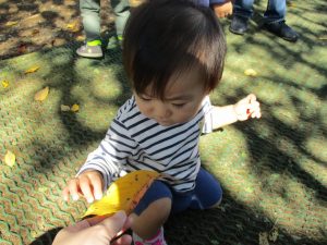 谷津コミュニティーセンターではローラー滑り台でたくさん体を動かしたり、秋の自然物集めを楽しみました♪