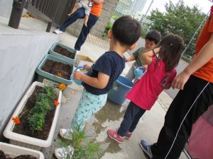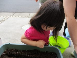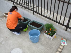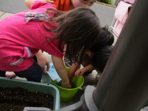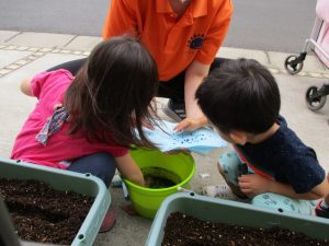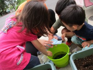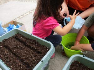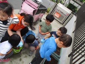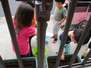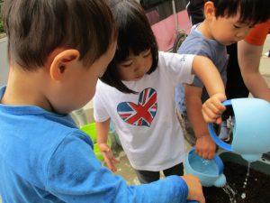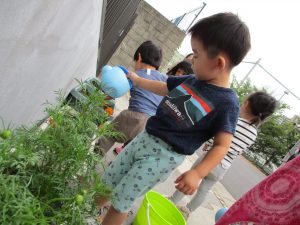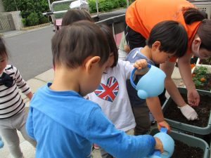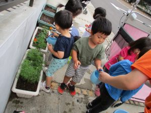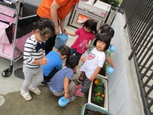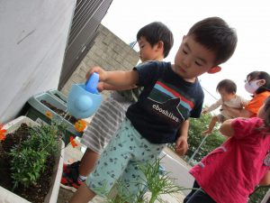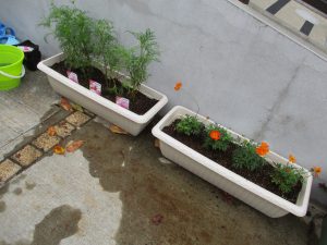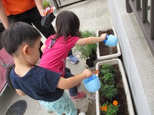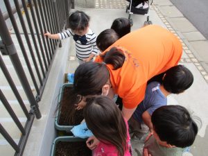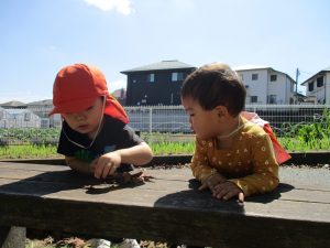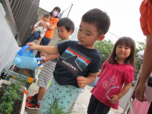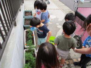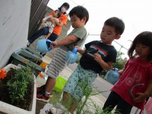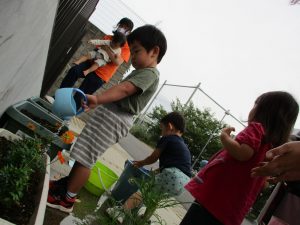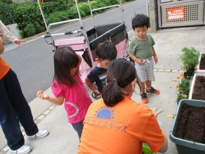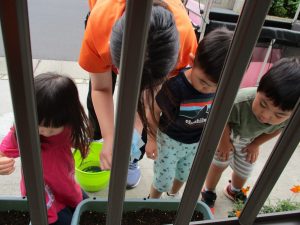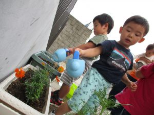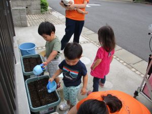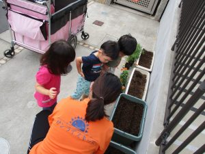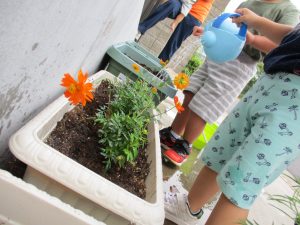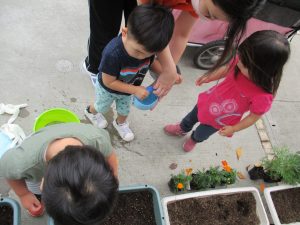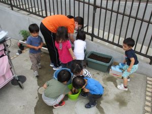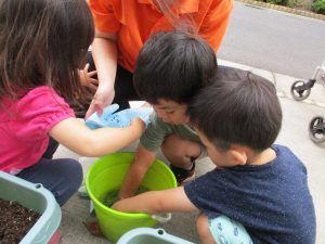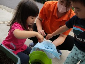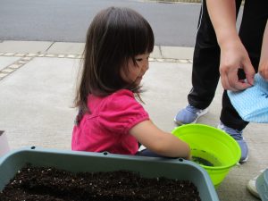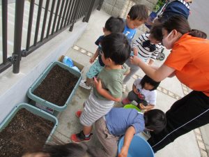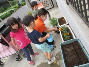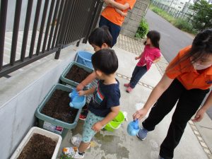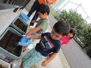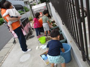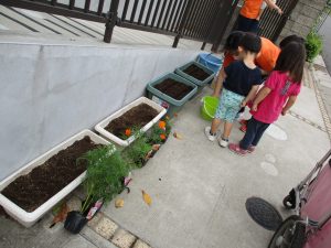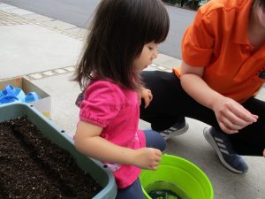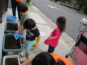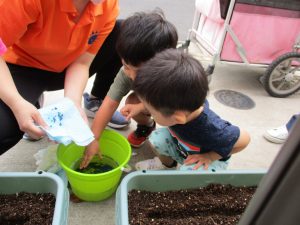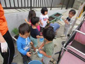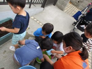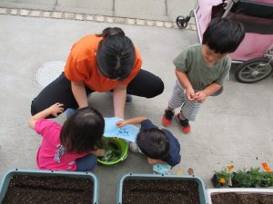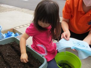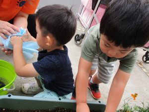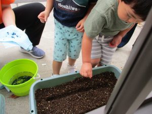 夕方は2歳児さんを中心に「コスモス」の苗植えと「ほうれん草」の種まきを行いました!