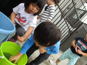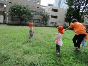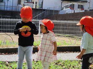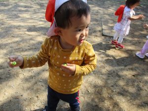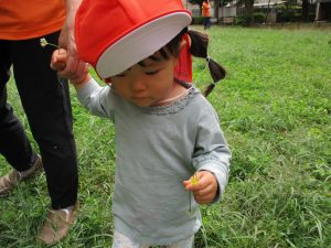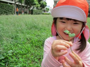 クローバー探しを皆で楽しみましたが、予想以上にクローバがたくさんあり「大きいのあったよ!」や「長いのあったよ!」と自慢気に先生達に見せる姿がなんとも可愛かったです♪