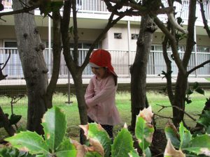 コミュニティーセンターは1年を通して色々な自然物が落ちており、冒険にはもってこいの公園ですね!